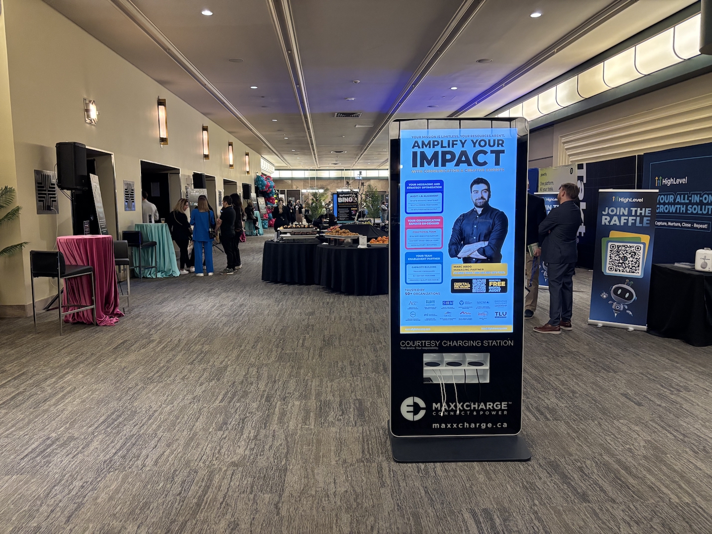 For this event, we deployed two 55” Charge Screens and two of our brand new 43” Lock Screens, providing attendees with convenient charging access while keeping them engaged throughout the day. Our solutions helped deliver key event information, enhance the overall experience, and create additional visibility for sponsors in a natural, non-intrusive way.