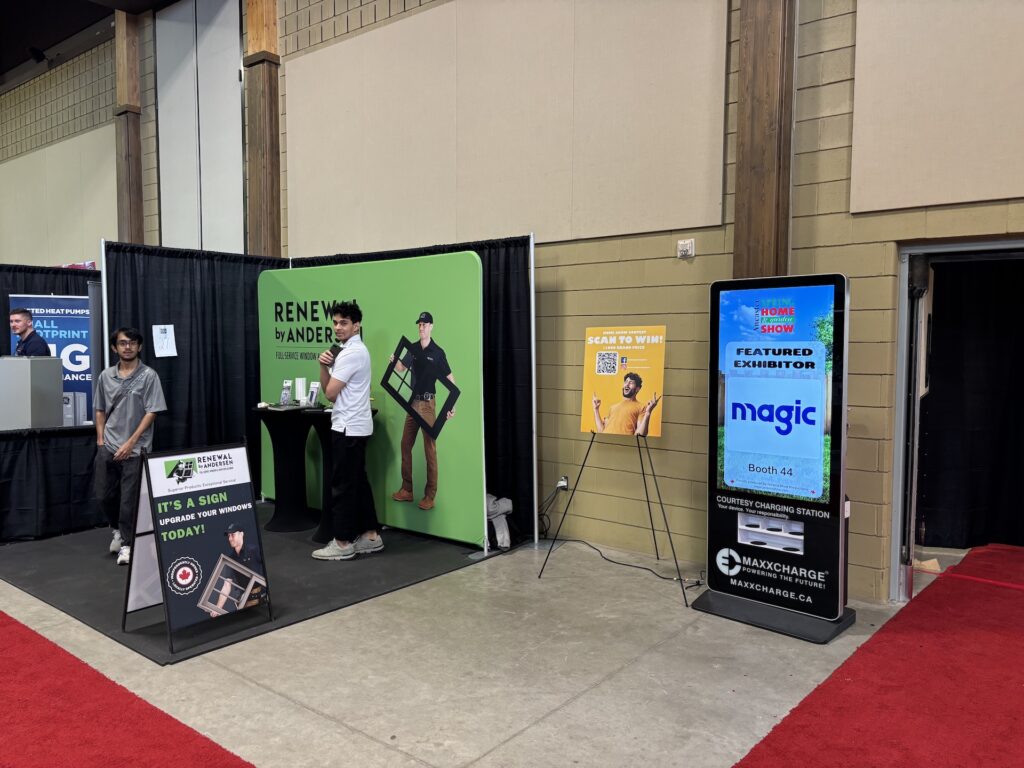 We kicked off the season at the Ancaster Fairgrounds from February 20th-22nd, where our sleek 55″ Charge and Touch Screens were placed throughout the venue to keep attendees powered up and engaged.