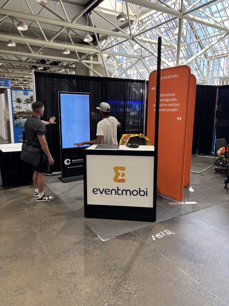 We were honoured to power up the event by supplying interactive touch screens that showcased the EventMobi app both in the EventMobi booth as well as on the trade show floor and one of our wonderful screens keeping hungry attendees engaged in the food service area, featuring a video from some of CMEE’s biggest supporters. These screens were a hit, drawing crowds, sparking conversation, and keeping guests informed with everything CMEE had to offer.